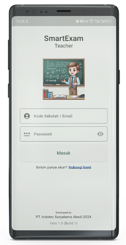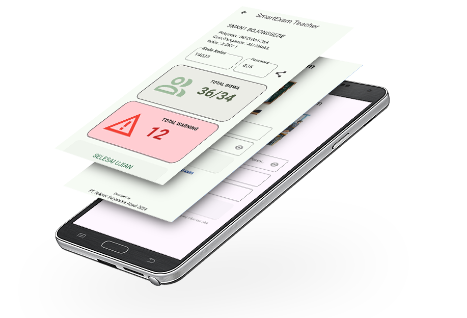 Selamat datang di Smart Exam, solusi ujian digital yang dirancang untuk meningkatkan keamanan dan kenyamanan dalam pelaksanaan ujian. Dengan Smart Exam, guru dapat dengan mudah mengelola ujian dari mana saja, bahkan mengimpor soal dari berbagai platform seperti Google Form. Fitur pengawasan canggih memastikan siswa tetap fokus, tanpa bisa keluar dari aplikasi atau menggunakan aplikasi lain selama ujian berlangsung. Jika ada pelanggaran, guru akan mendapatkan peringatan secara otomatis. Smart Exam hadir untuk menciptakan pengalaman ujian yang lebih aman, cepat, dan efektif bagi sekolah dan siswa.
